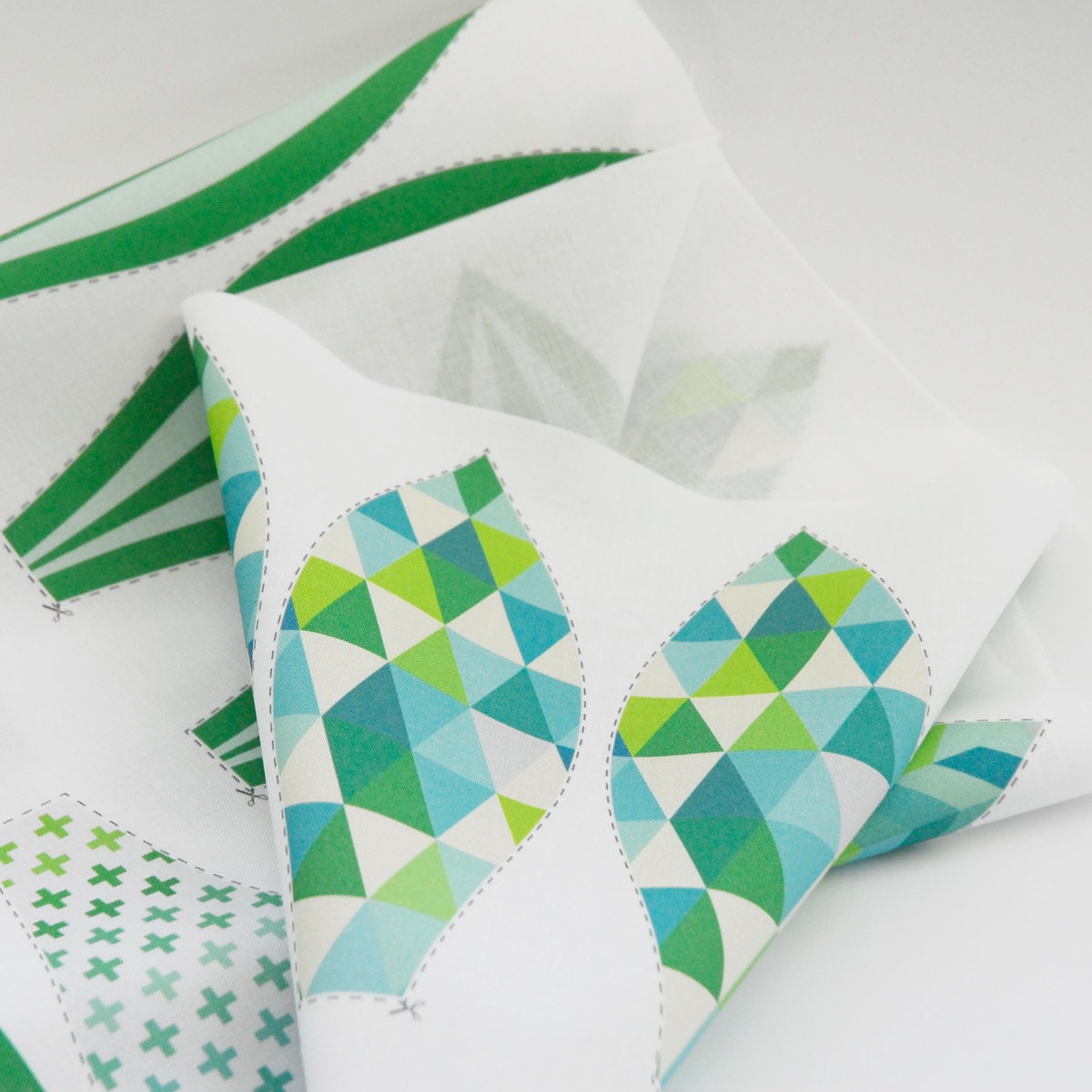 Panels are each 1/3 yard (44" wide) and make up four balloons, in the colours shown, with matching bunting. Hang them as a mobile or use them individually, great as a handcrafted gift.